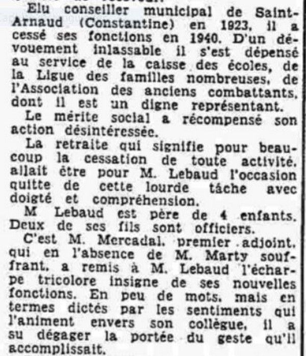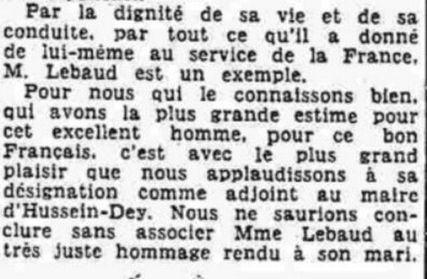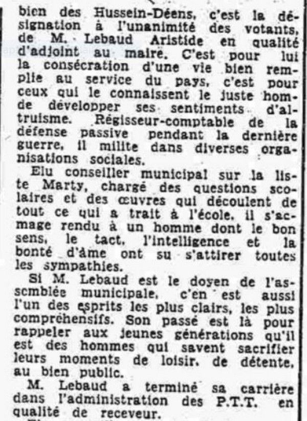 Aristide LEBAUD nommé Adjoint au Maire d'Hussein-Dey. 26 Avril 2018 Publicité Source : L'Echo d'Alger du 31 octobre 1955. Tag(s) : #MUNICIPALITE
