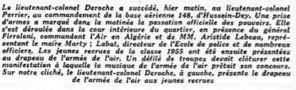 Octobre 1955 : Prise de Commandement à la Base Aérienne 148. 23 Avril 2018 Publicité Source : L'Echo d'Alger du 1er octobre 1955. Tag(s) : #VIE MILITAIRE
