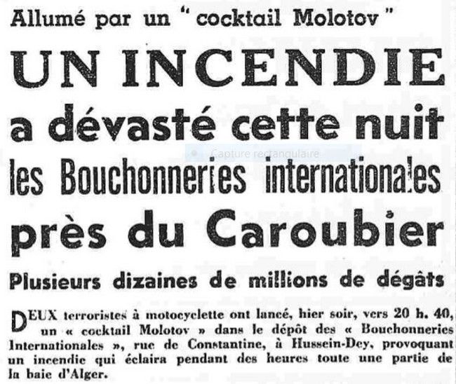 Source : L'Echo d'Alger du 28 novembre 1956. L'ancien café LA PERGOLA aujourd'hui à Hussein-Dey.