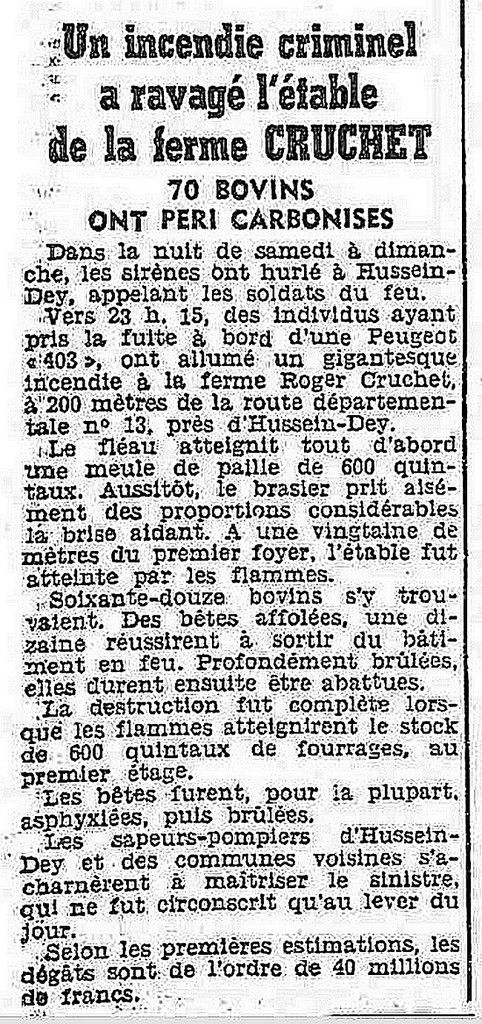 Lire la suiteOctobre 1956 : Incendit Criminel à la Ferme CRUCHET.